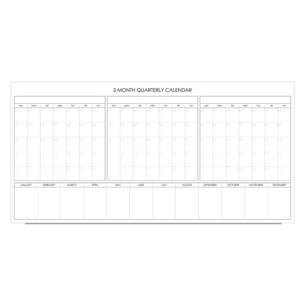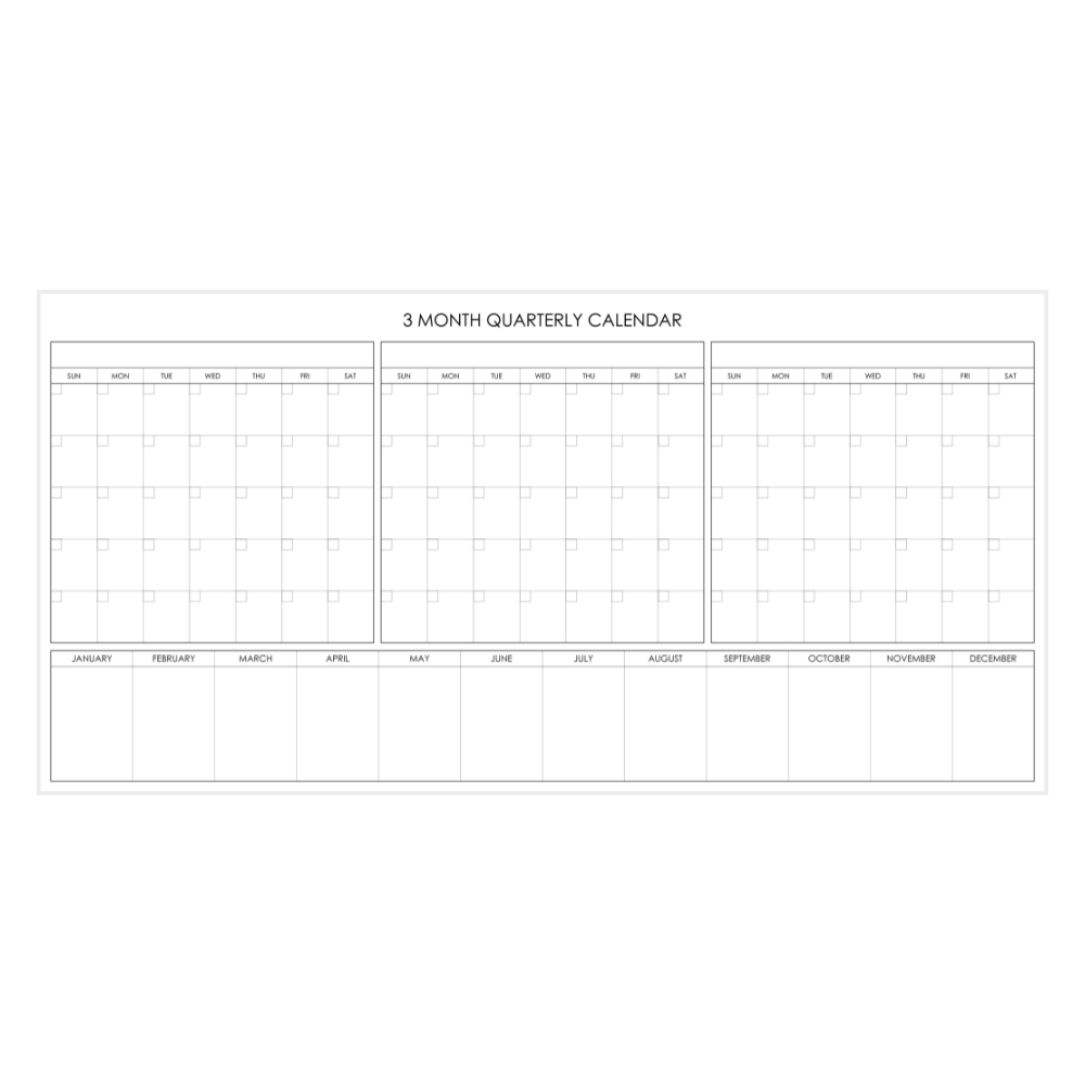 - Three equal monthly grids for clear quarterly planning