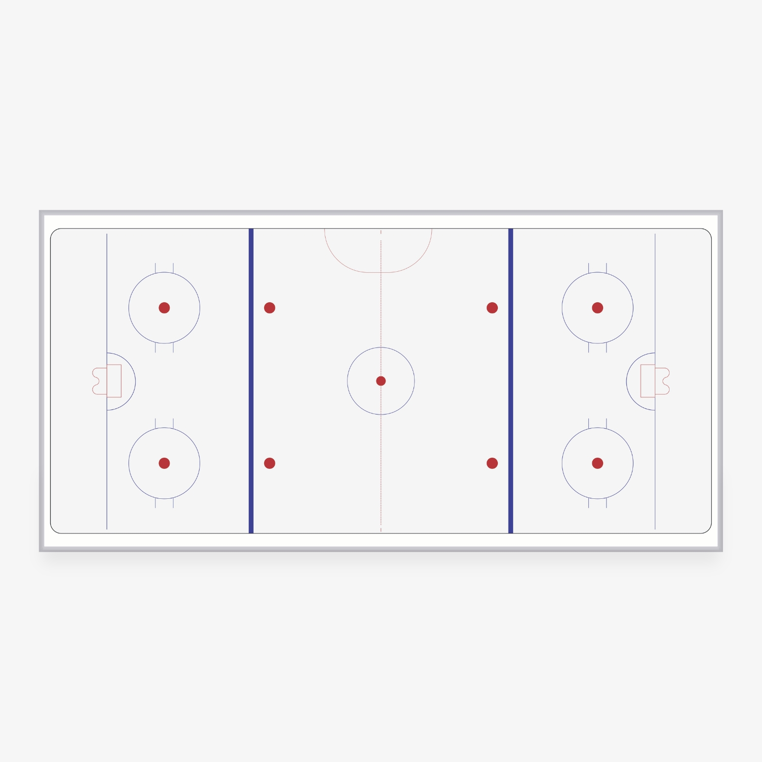 - Accurate rink layout with zones, face-off circles, and goal creases