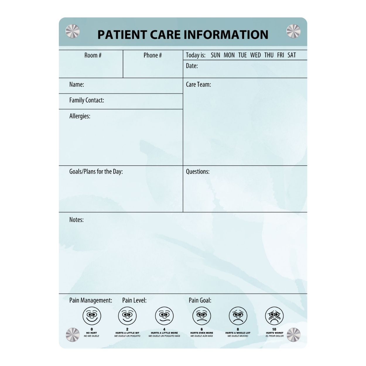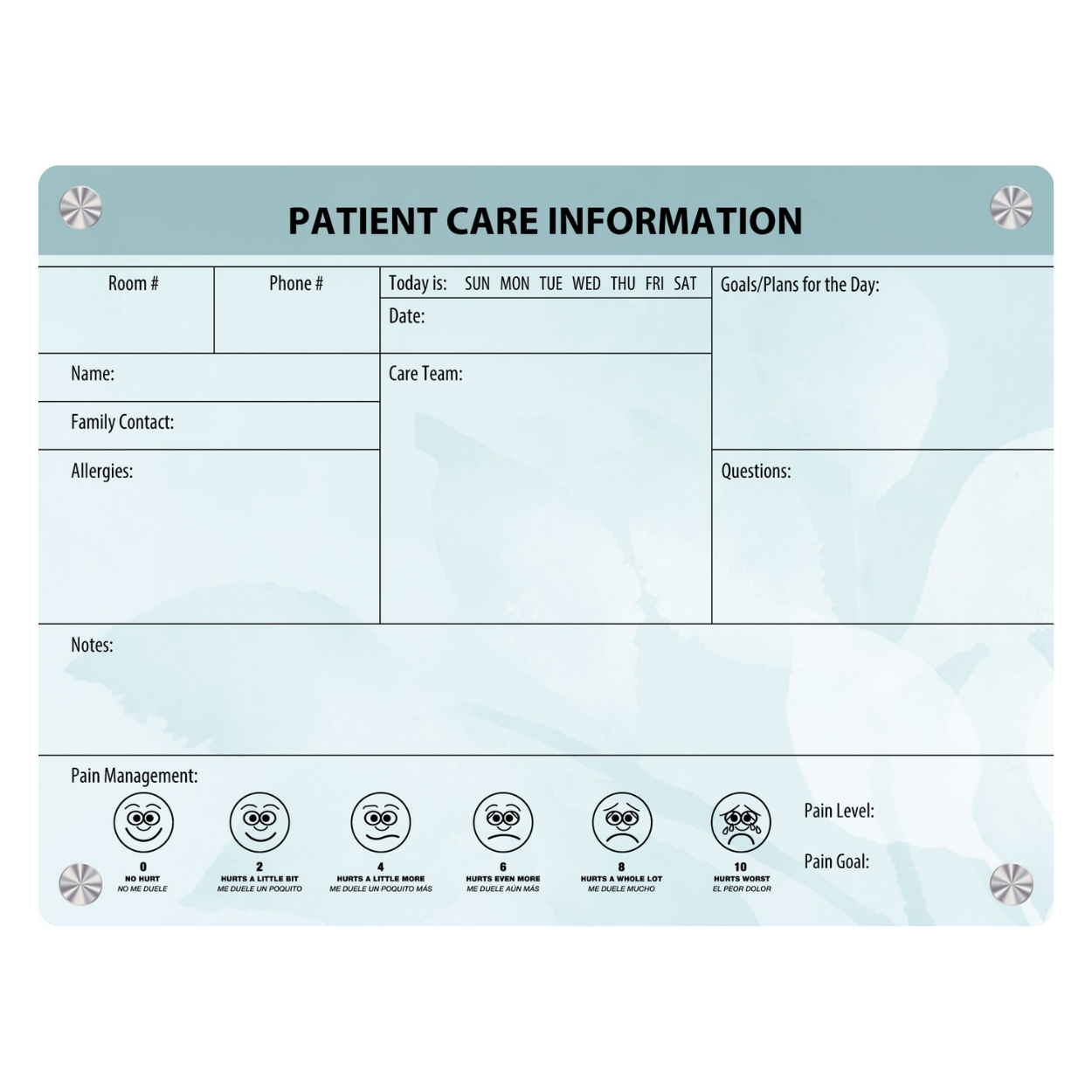 - Also available as a Patient Room Whiteboard.