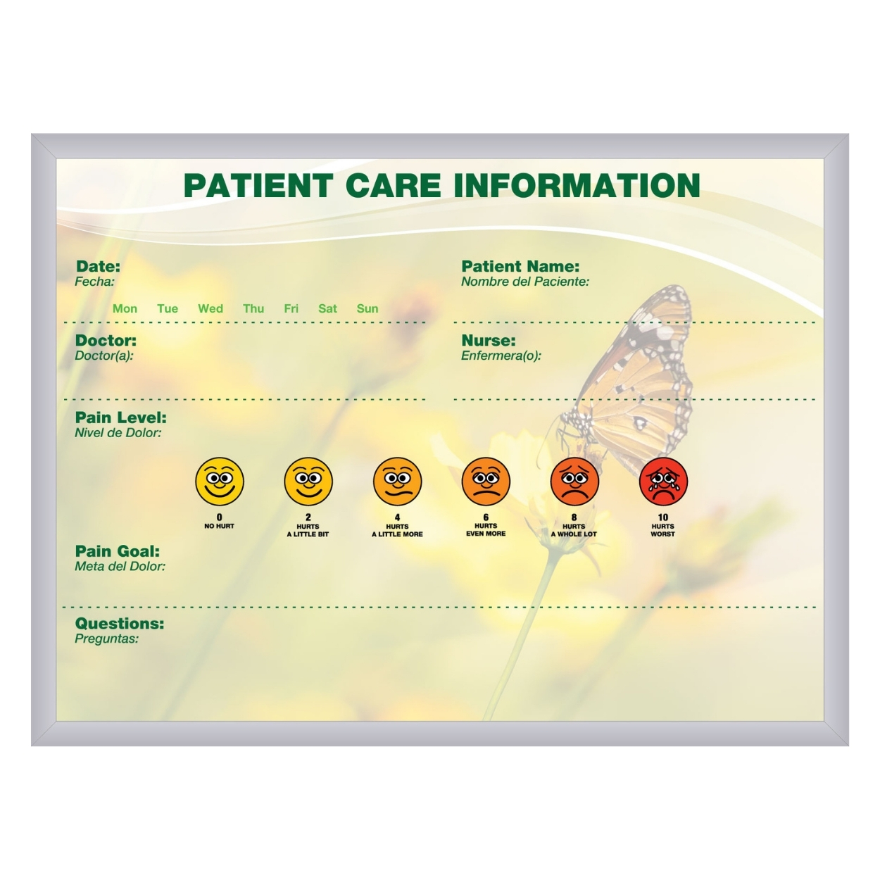 - Visually enhanced graphic patient room whiteboard designed to boost healing & care
