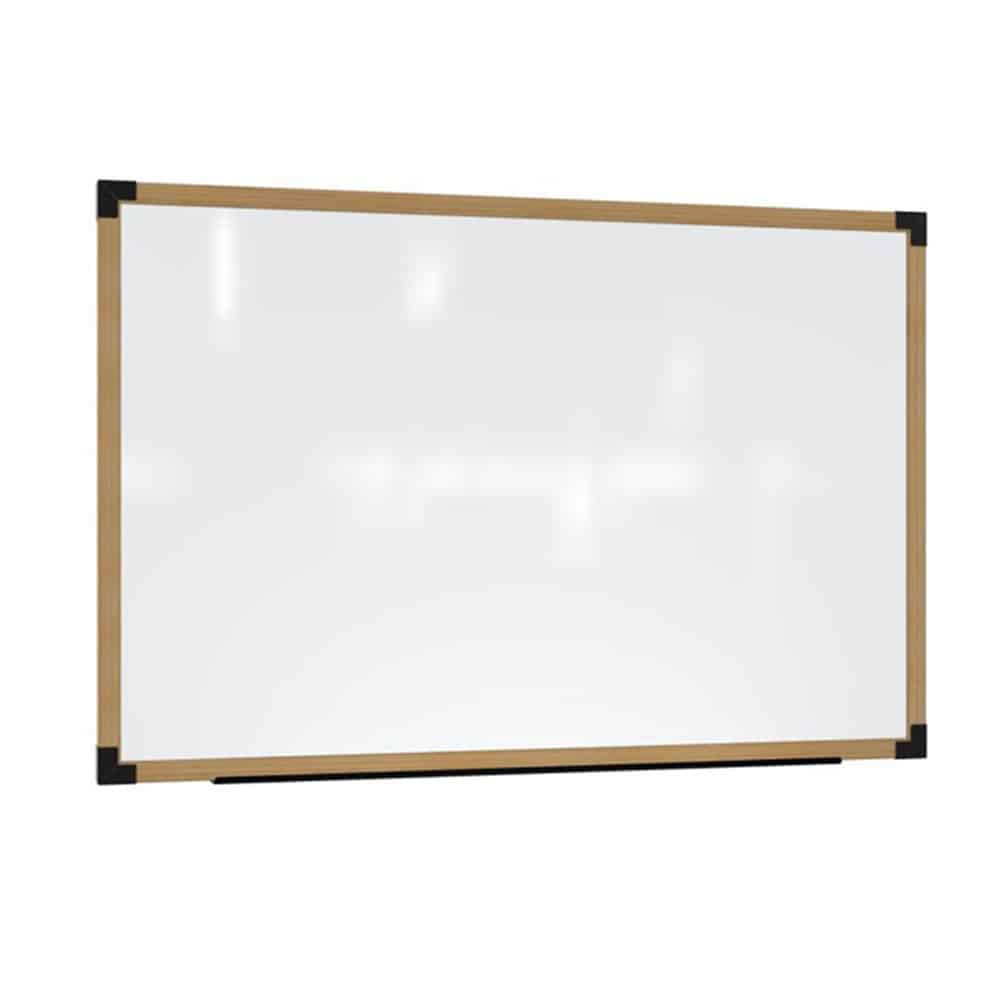- Premium oak-framed dry erase communication boards with matte black accents