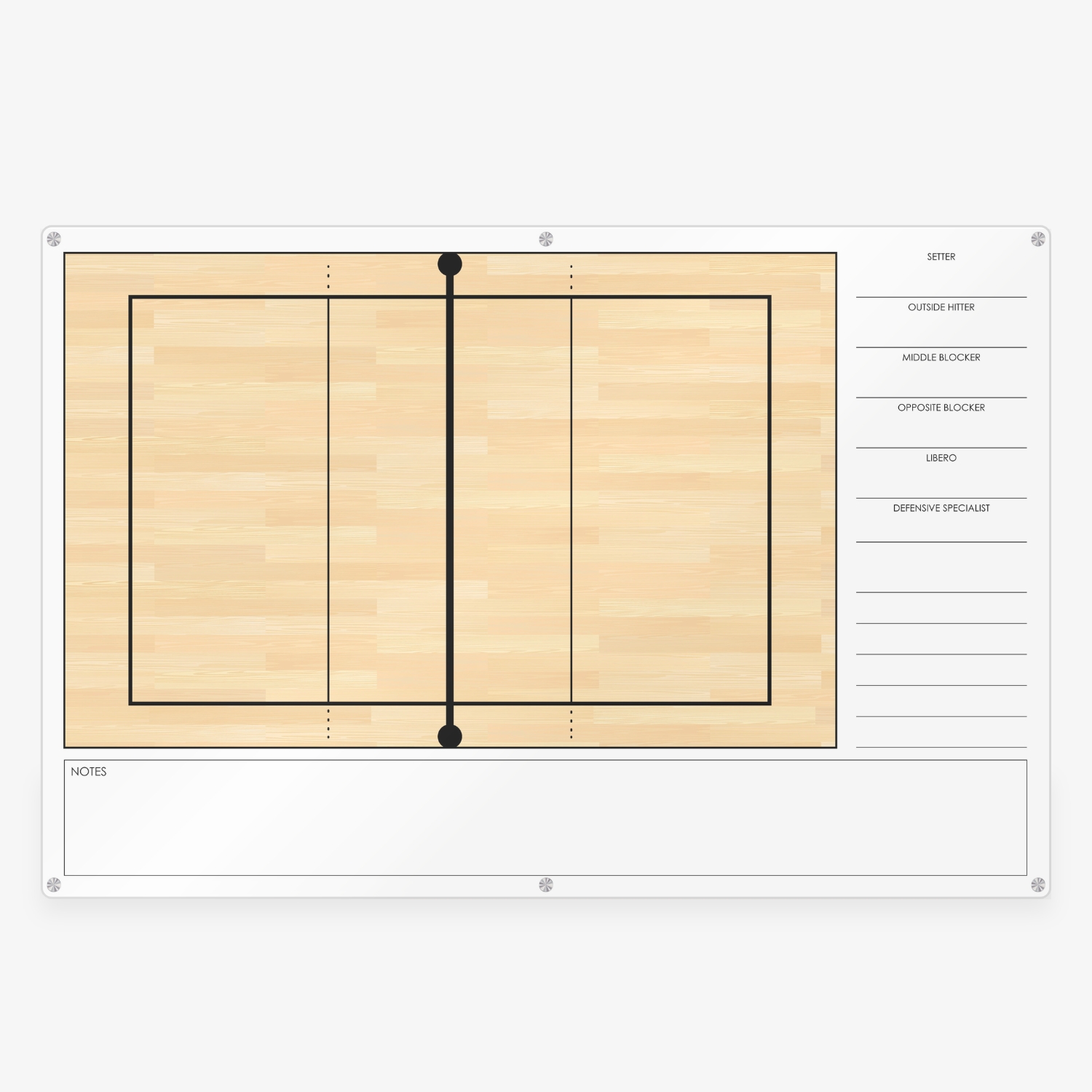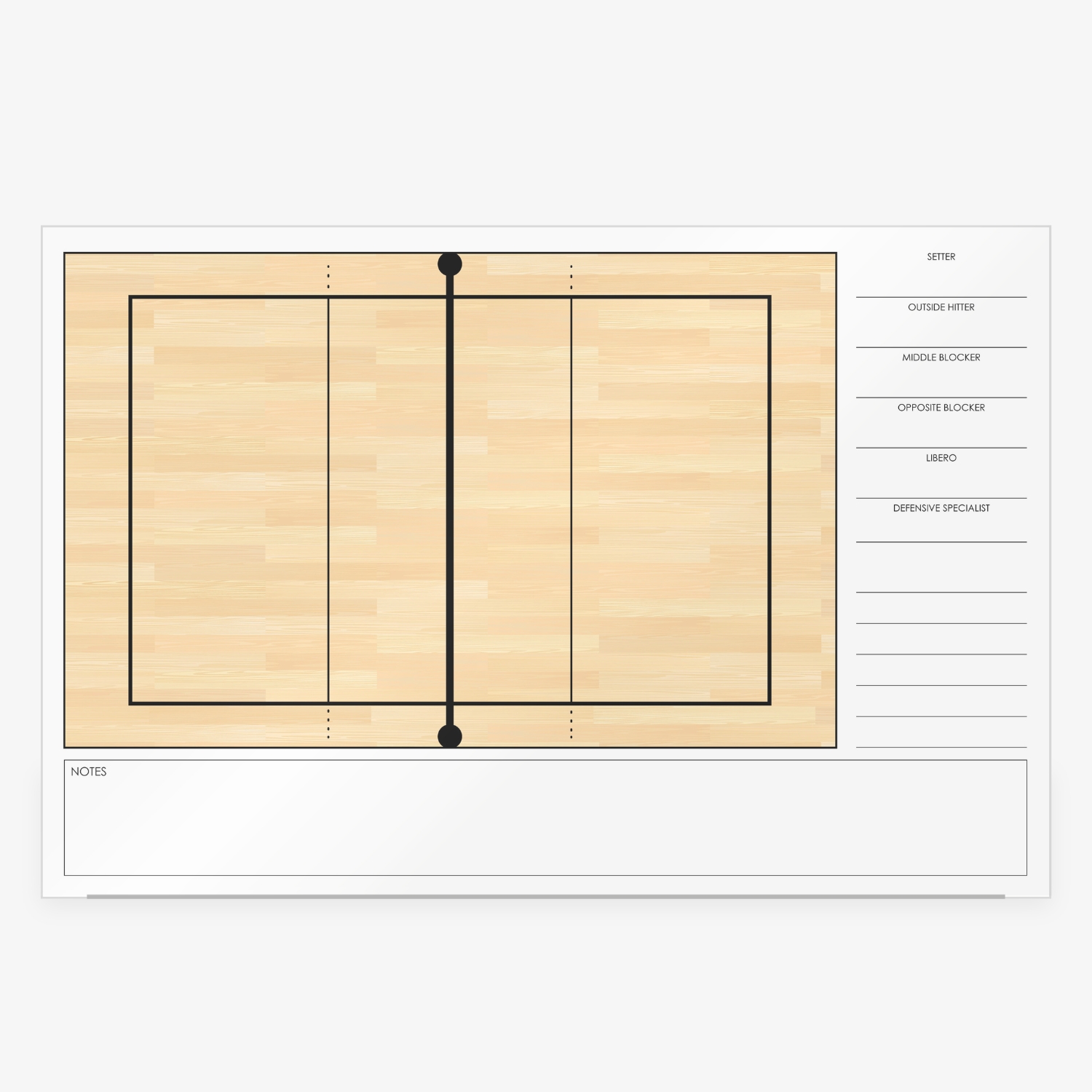- Full volleyball court layout for clear and focused coaching