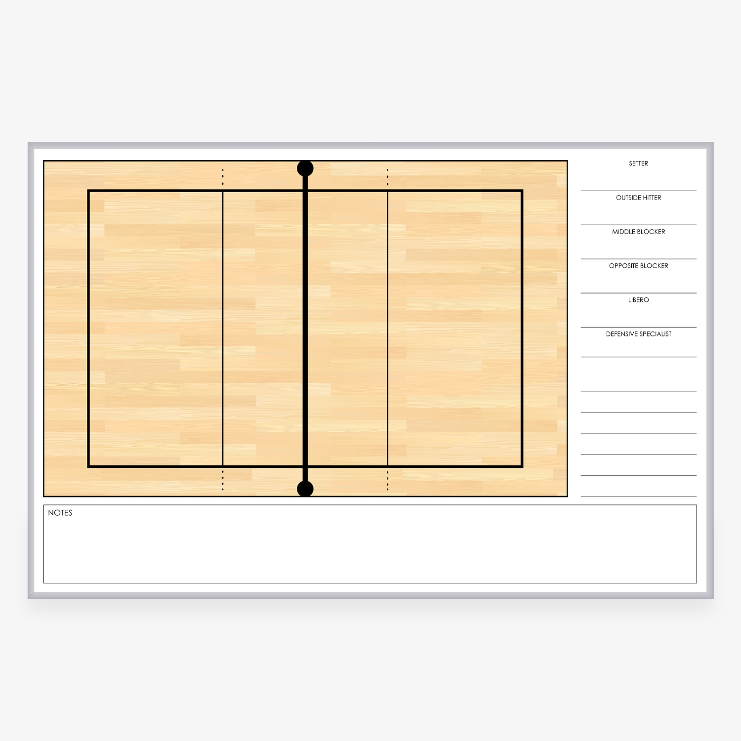 - Full volleyball court layout for clear and focused coaching